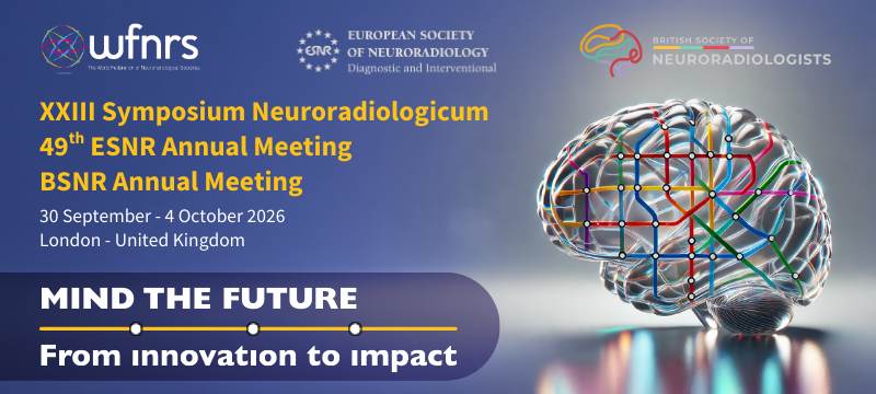Joint ESNR-BSNR-SNR Meeting 2026 London, UK Wednesday 30 September 2026 9:00 am 09:00 Sunday 4 October 2026 4:00 pm 16:00 Google Calendar ICS To register, visit: https://www.esnr.org/event-details/6941#XXIII_Symposium_Neuroradiologicum_&_49th_ESNR_Annual_Meeting_&_BSNR_Annual_Meeting&Registration